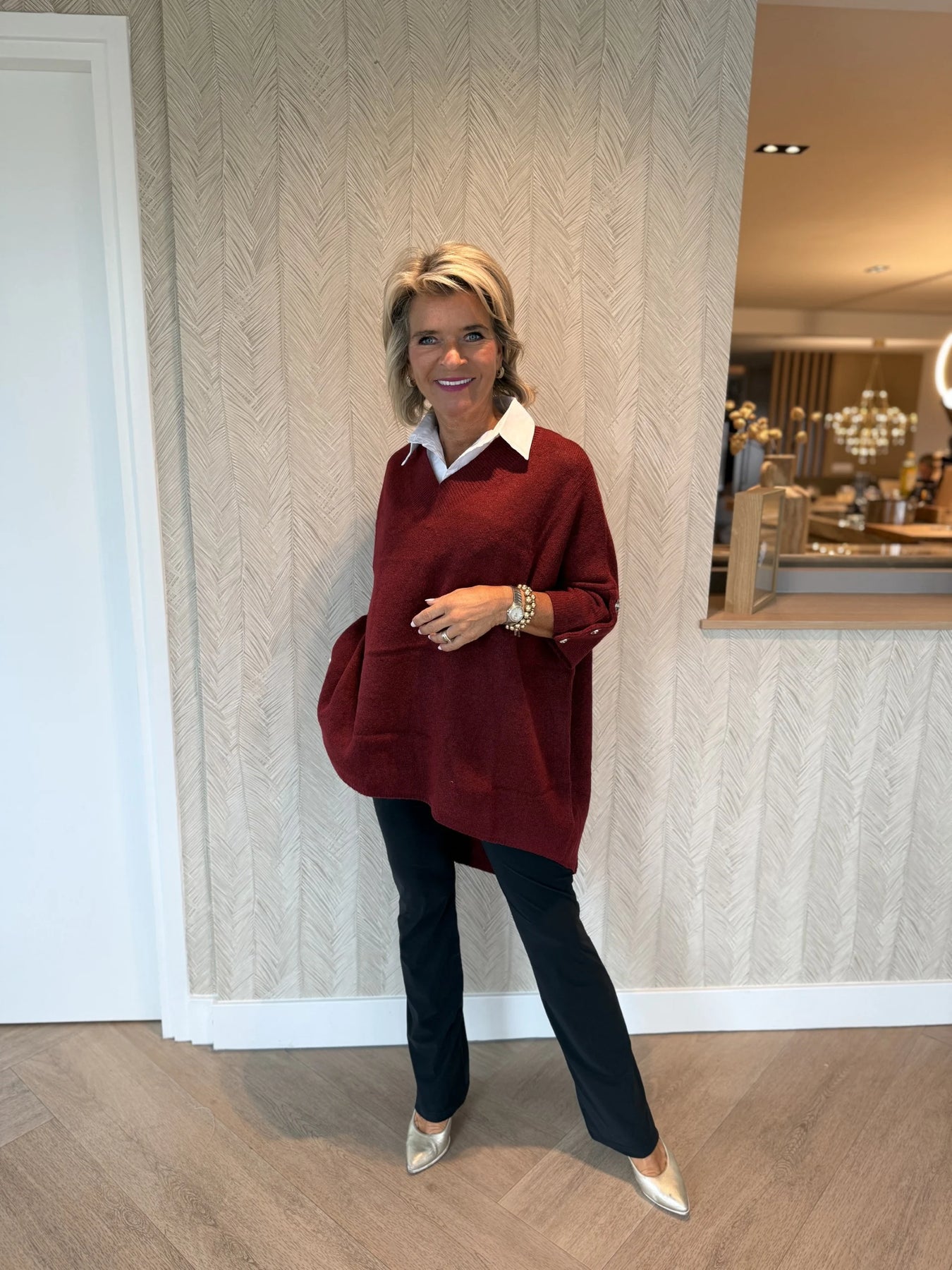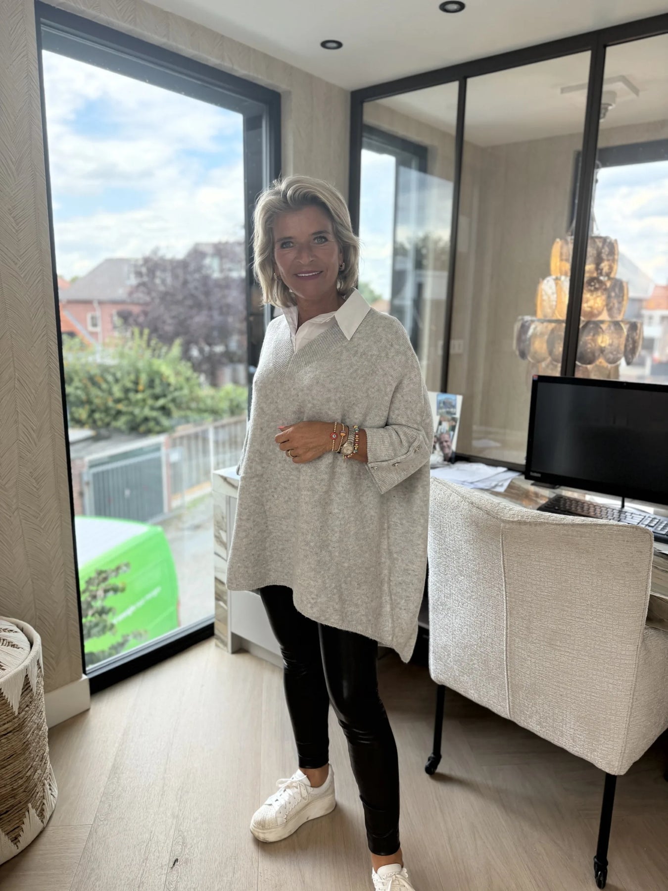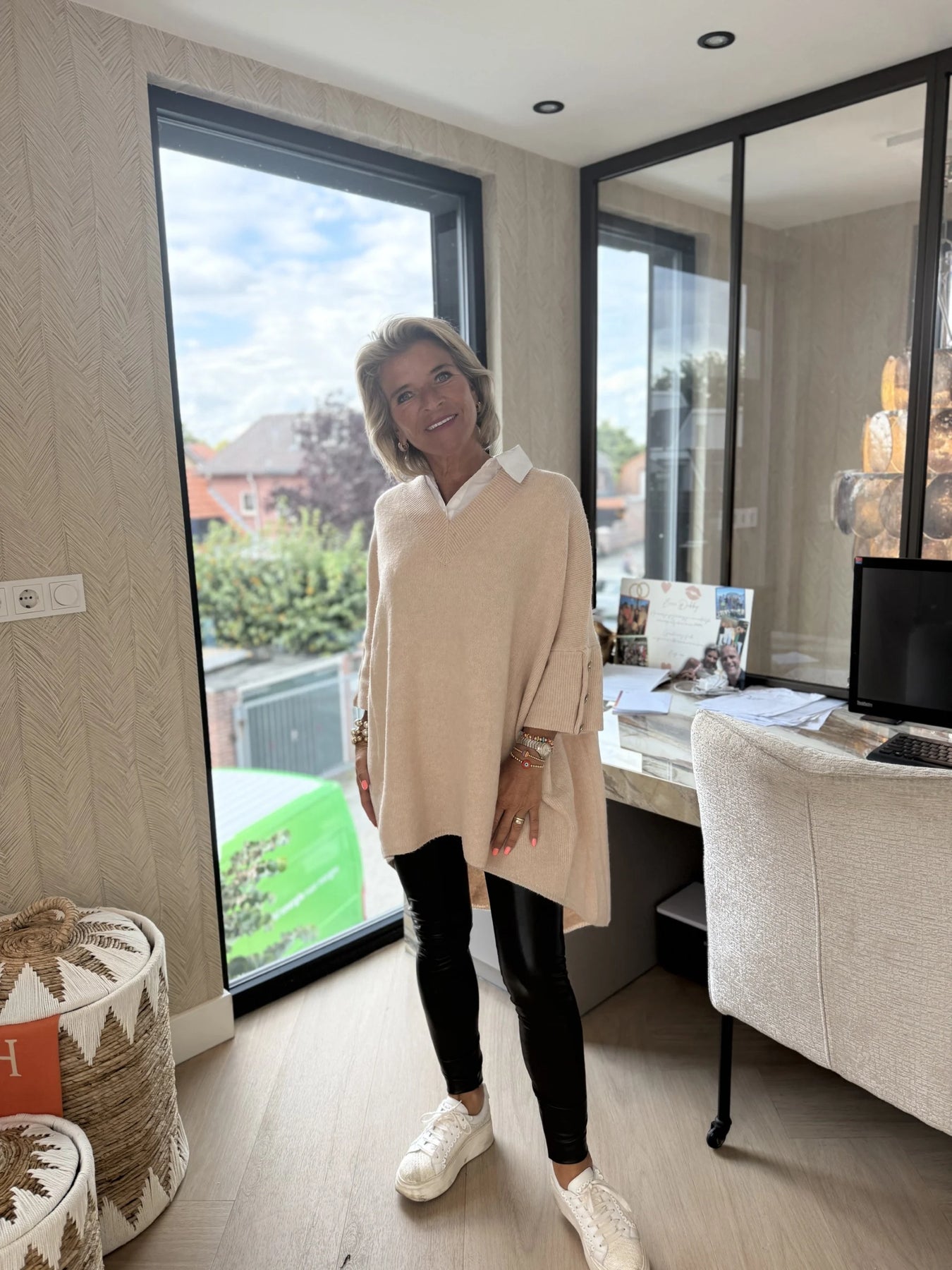 El suéter Clara™ es esa prenda única que transforma cualquier look. Su diseño con escote en V, botones decorativos y corte asimétrico aporta un aire moderno y chic, mientras que su tejido suave y ligero lo convierte en un básico irresistible para esta temporada.